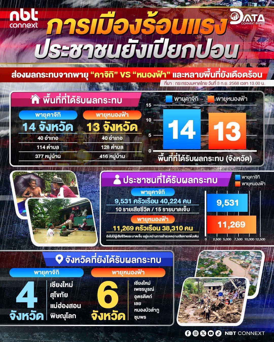 📊ส่องผลกระทบจากพายุ “คาจิกิ” Vs “หนองฟ้า” และหลายพื้นที่ที่ยังเดือดร้อน