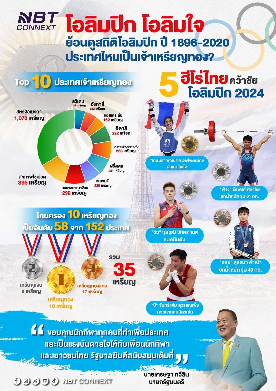 โอลิมปิก โอลิมใจ ย้อนดูสถิติโอลิมปีก ปี 1896-2020 ประเทศไหนเป็นเจ้าเหรียญทอง?