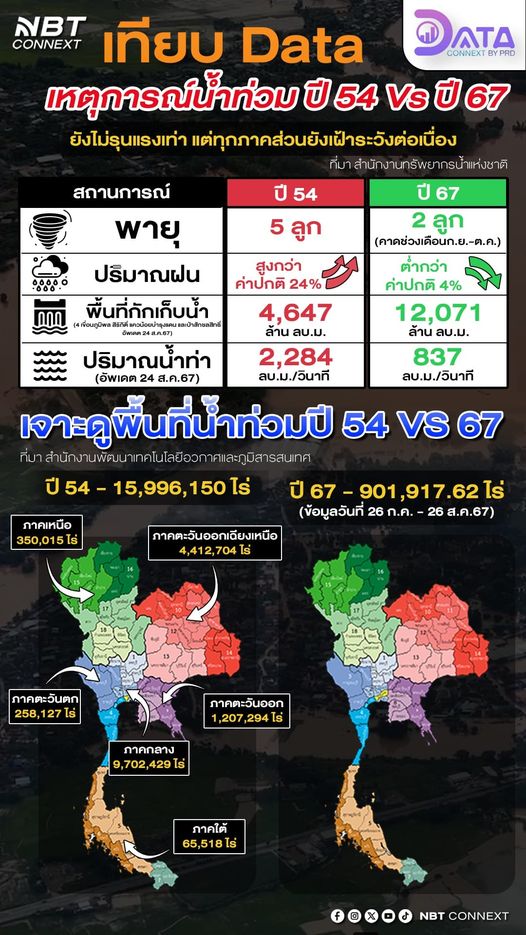 เทียบ Data ชัดๆ ! เหตุการณ์น้ำท่วม ปี 67 ยังไม่รุนแรงเท่าปี 54 แต่ทุกภาคส่วนยังระดมกำลังเฝ้าระวังอย่างต่อเนื่อง